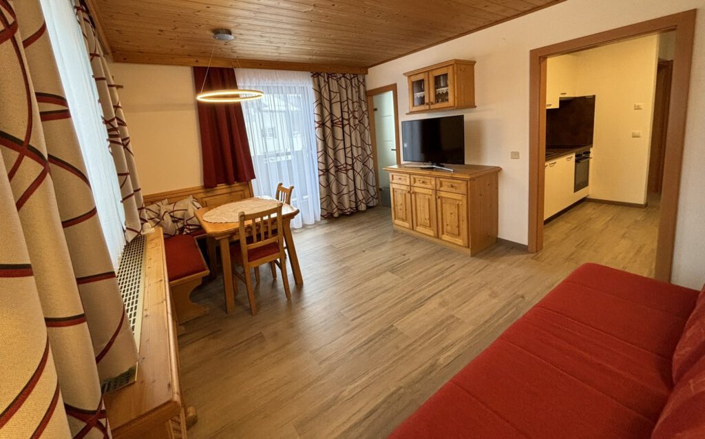 38 m² aufgeteilt in einen Wohn- und Schlafbereich mit TV, einer Küchenzeile und einem Badezimmer mit Dusche. Vom Balkon aus genießen Sie einen Bergblick.